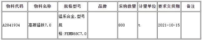 (一)、标的名称:高碳锰铁公开简单比价20210915
