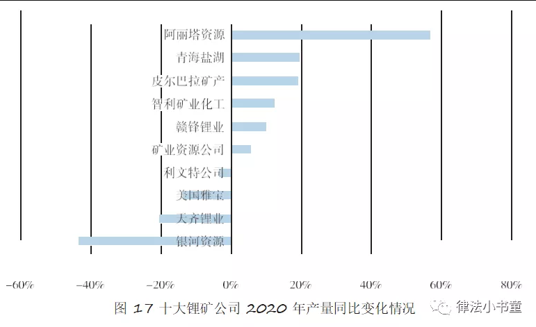 2020 年,全球大型锂矿公司产量变化幅度较大(主要由于项目整合),但前十大公司总产量基本保持稳定。另外,大型锂矿公司通过行业整合,市场占有率逐渐提升,全球前十大锂矿公司在 2020 年的市场占有率达到了 93%,相比于 2019 年又提高了 7%。