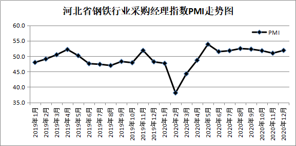 河北省冶金行业协会发布,2020年12月份河北省钢铁行业PMI为51.9%,环比上升0.9个百分点,连续八个月处于荣枯线上方。