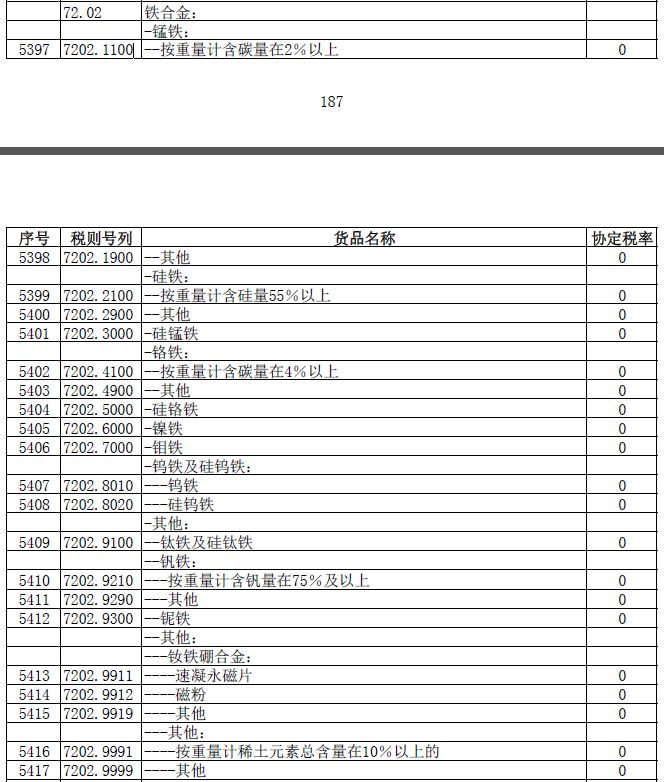 中国铁合金网:1月13日,财政部网站发布国务院关税税则委员会关于对原产于韩国的部分进口货物实施《区域全面经济伙伴关系协定》(RCEP)协定税率的公告,其中涉及到7202项下铁合金产品进口协定税率均为零。根据协定规定,RCEP将于2022年2月1日起对韩国开始生效。