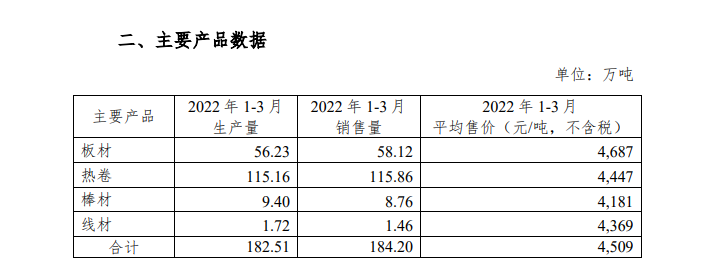 重庆钢铁股份有限公司根据《上海证券交易所上市公司自律监 管指引第 3 号——行业信息披露》相关规定,现将 2022 年第一季度 (本报告期)经营数据(未经审计)公告如下: