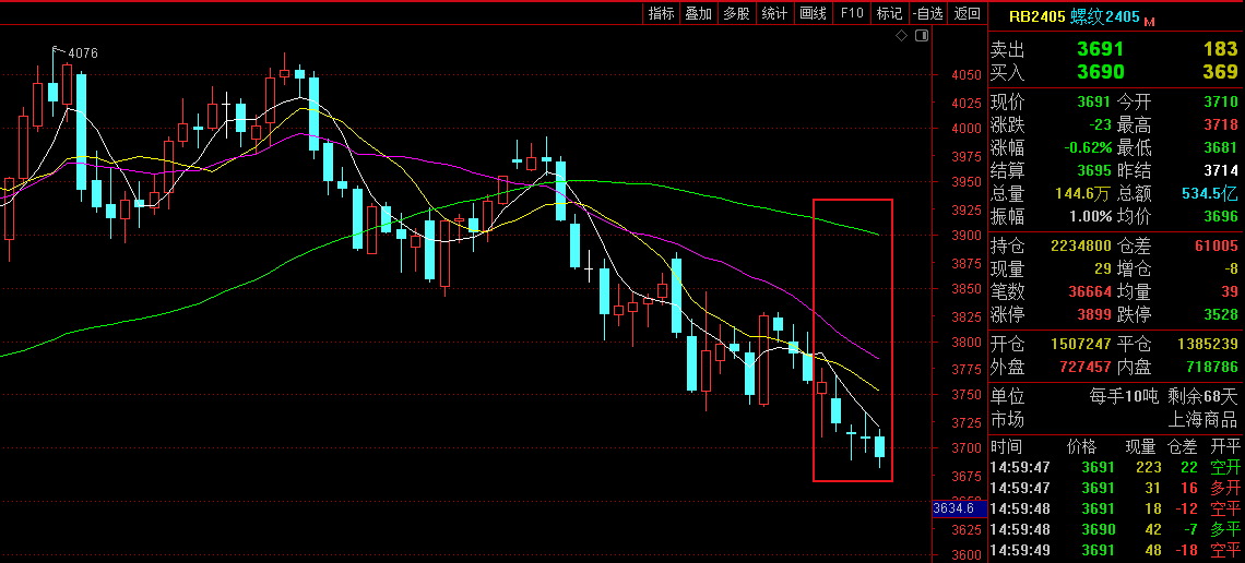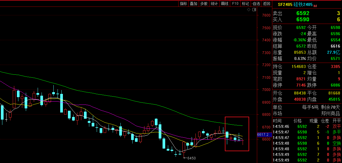 期货端:本周2405主力合约开盘价6660,最高价6664,最低价6554,收盘价6592,结算价6572,持仓量154603,成交量515881,成交金额170.207亿元,跌幅1.23%。
