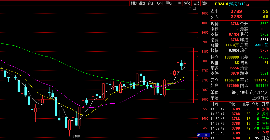 期货端:本周2409主力合约开盘价7360元/吨,最高价7550元/吨,最低价7088元/吨,收盘价7400元/吨,结算价7280元/吨,持仓量211728手,成交量1760918手,成交金额644.504亿元,涨幅0.60%。