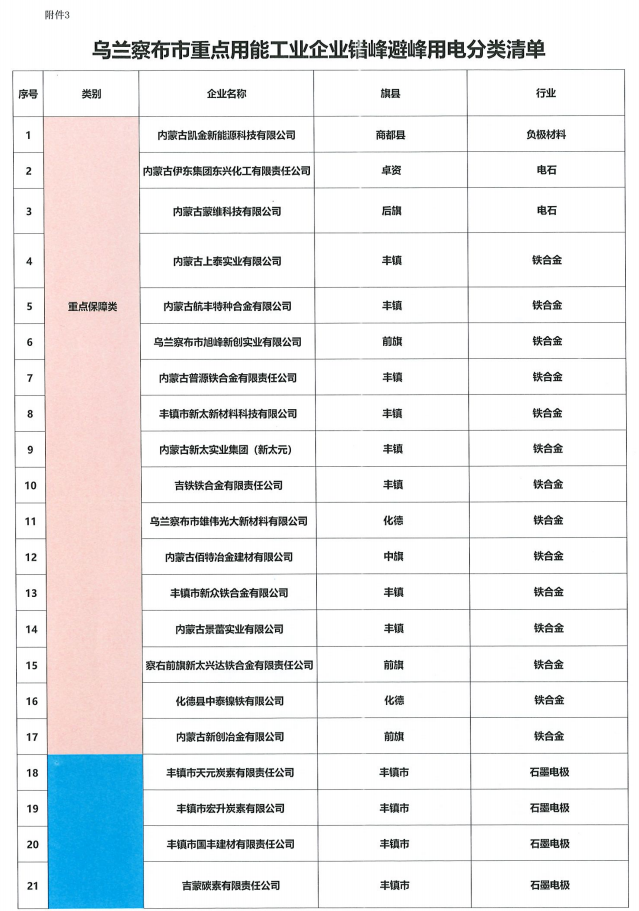 关于印发《乌兰察布市重点用能工业企业错峰避峰用电执行方案(2024版,试行)》的通知。 |