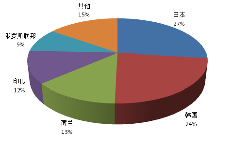 2016年10月中国锰及其制品(包括废碎料)主要出口至日本和韩国