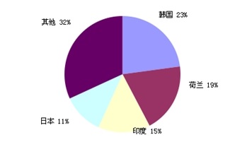4月,日本从中国进口4924.576吨,占总进口数量的86.21%。出口至中国大陆1.722吨,占总出口量的24.46%。