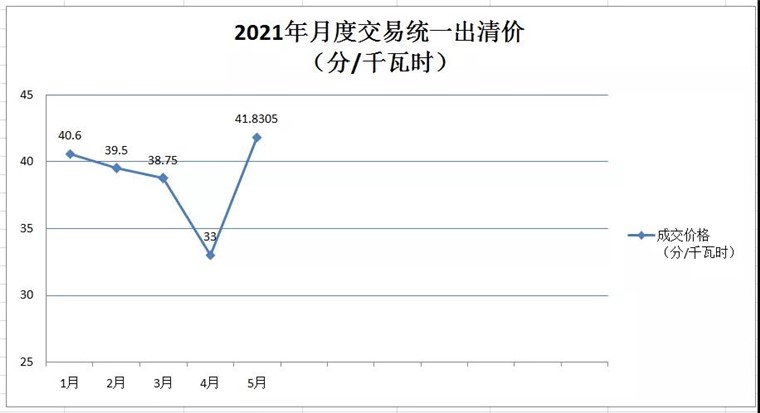 广西电力市场2021年5月月度竞价交易价格环比上涨近9分