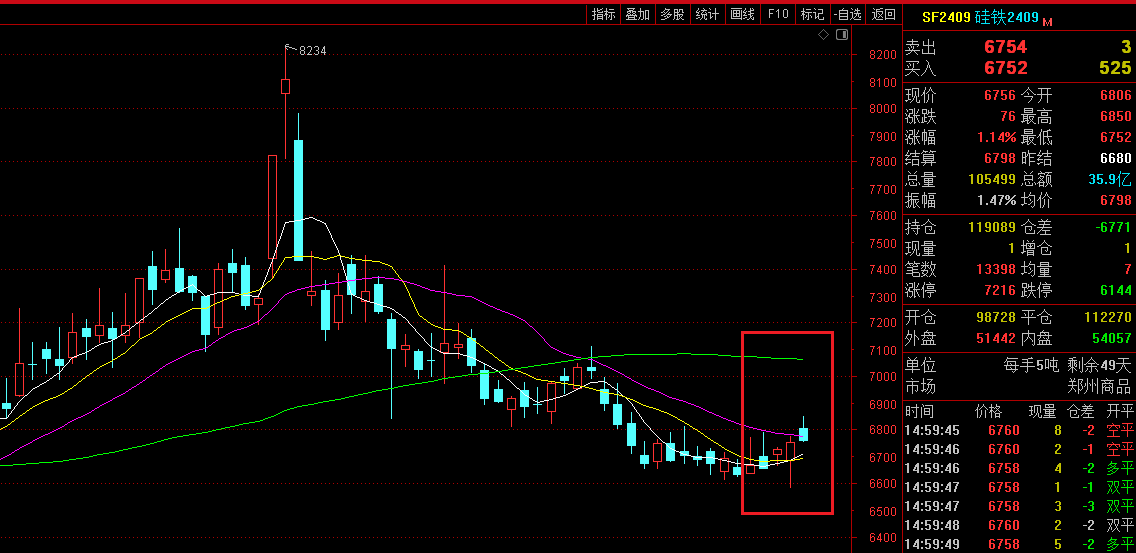 7月26日硅铁期货盘面上涨1.14% 收盘6756
