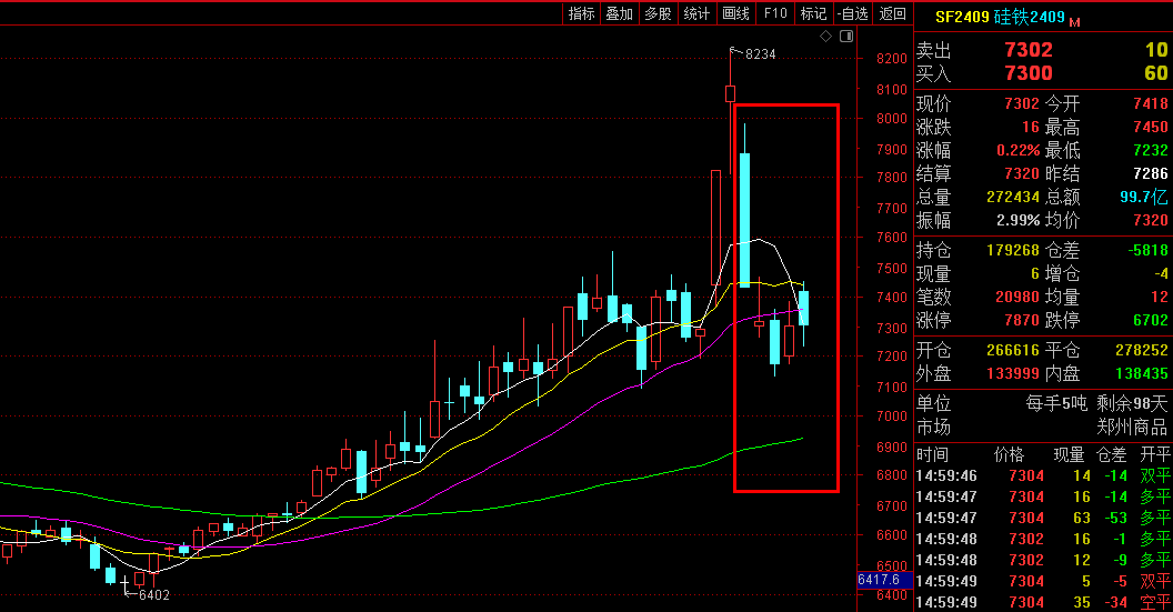 6月6日硅铁期货盘面上涨0.77% 收盘7302