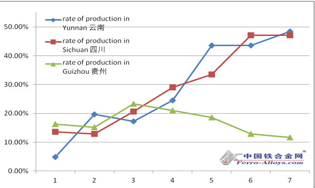 中国铁合金网讯:七月份主产区云南、四川两地金属硅厂开工率不足六成,云南六月份开工率55.2%,同比下滑33%,四川开工率55%,同比下滑20%。同时较6月份上升近10个百分点。而北方新疆地区开工率与去年持平约70%.七月份甘肃地区开工率大约48%,同比下降15%. |