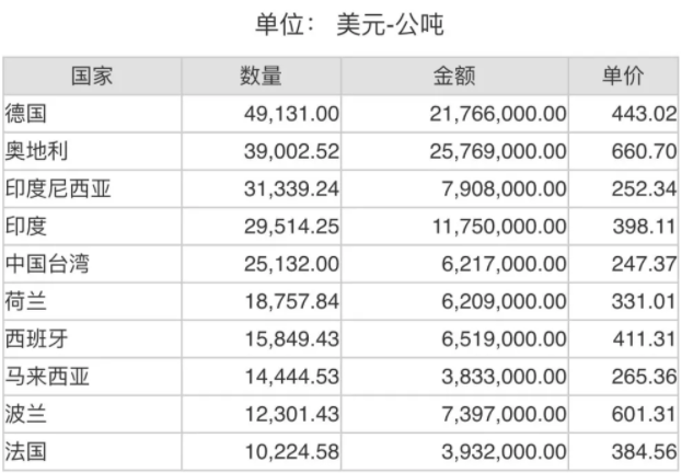 2021年6月份世界十大镁砂进口国排名