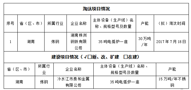 关于冷水江市泰和金属有限公司受让湖南株洲钢铁有限公司30万吨电弧炉炼钢产能指标的产能置换方案的公告