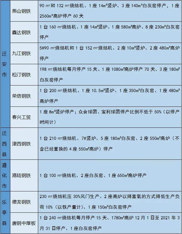 2020-2021年度秋冬季唐山涉及停限产钢企名录