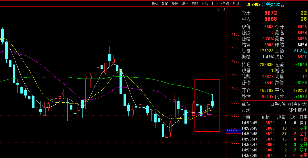 12月25日硅铁期货盘面下跌0.52% 收盘6868