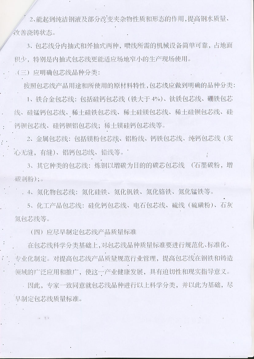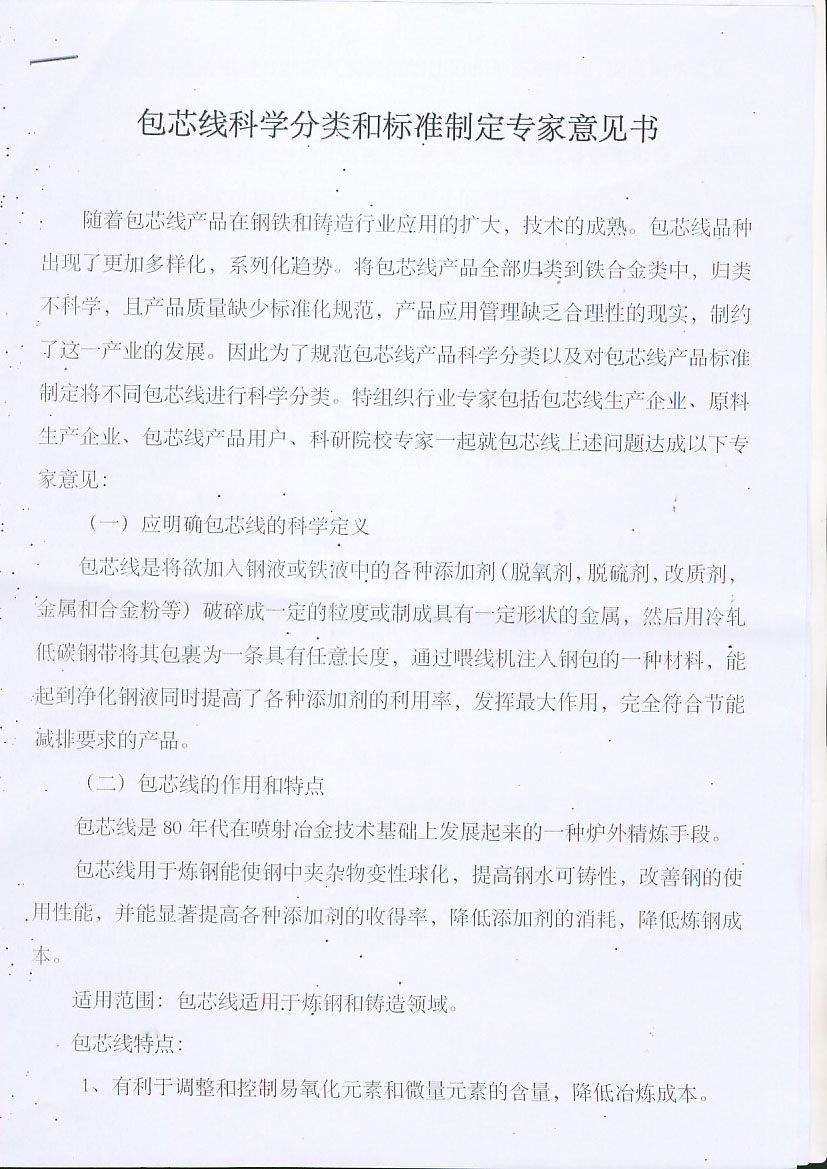 会议探讨了包芯线分类及标准制定事宜,形成了专家意见书,如下: