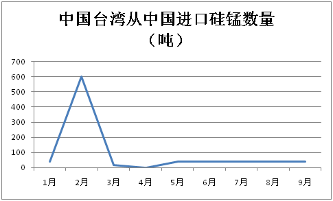 中国铁合金网讯:中国的硅锰产品主要出口到中国台湾地区、古巴、蒙古等。2015年以来,中国台湾地区累计从中国进口硅锰产品达到862吨,位居中国硅锰出口排行榜第一位。从5月到9月,中国台湾连续5个月每月从中国进口硅锰40吨。
