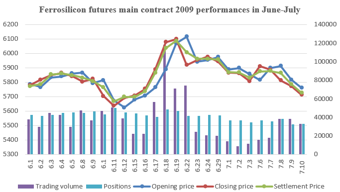 [Ferrosilicon futures 2005 contract] Opening price of ferrosilicon futures 2005 contract of this week was 5,816, highest price was 5,928, lowest price was 5,702, closing price was 5,712 and the settlement price was 5,726. The positions were 32,669 and the trading volumes were 143,544.