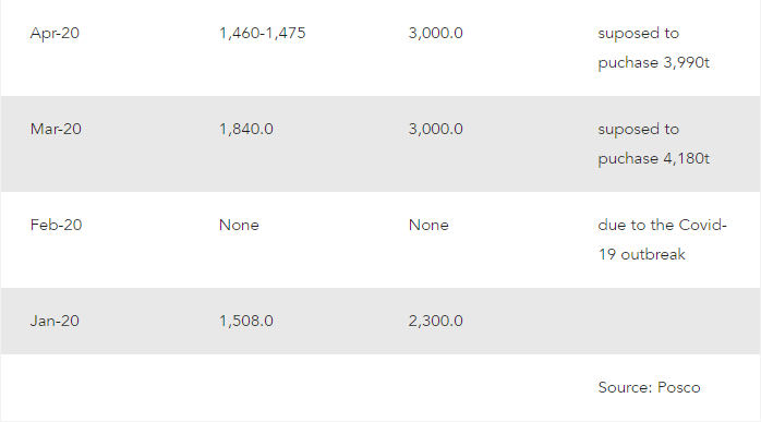 Posco on 16 December secured only about 1,000t of the material, while it planned purchase 5,244t for January delivery.