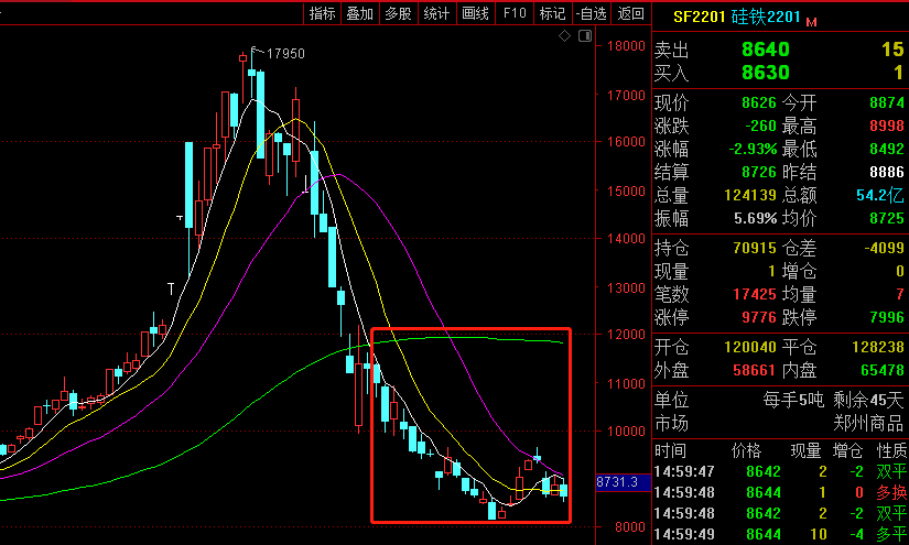 Below are ferrosilicon futures main contract 2201 daily specific performances:
