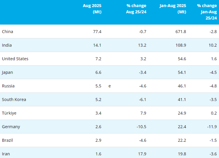 In March, the national coke output was 40.17 million tons, a year-on-year decrease of 1.1%. In the first quarter, the national coke output was 115.12 million tons, a year-on-year decrease of 4.9%.