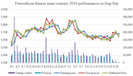 The 2010 ferrosilicon contract price on ZCE closed at 5700 yuan per ton on September 29. |