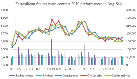 The 2010 ferrosilicon contract price on ZCE closed at 5700 yuan per ton on September 29. |