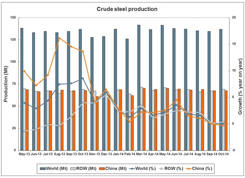 Worldsteel:World Crude Steel Production Statistics in November 2014 slightly Up