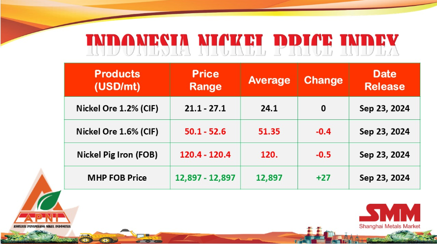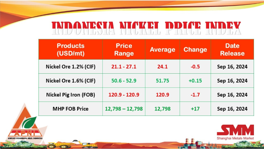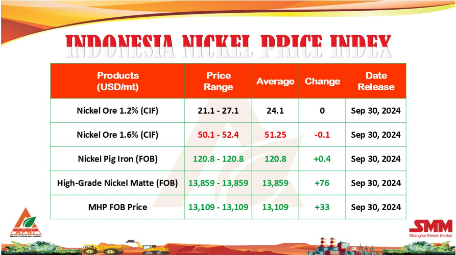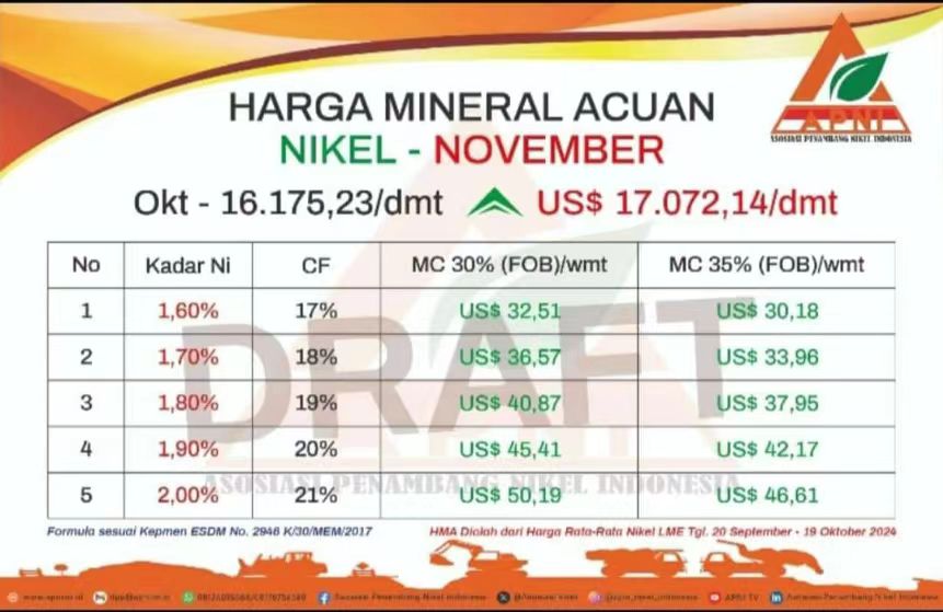 APNI released the price (HMA) of nickel ore for November 2024 |
